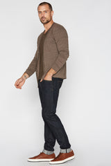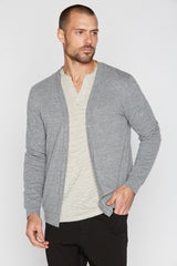 Indulge in our men's tri-blend cardigan sweater, a must-have for your wardrobe. Crafted with our one-of-a-kind fabric blend, it effortlessly conforms to your movements and layers seamlessly. Whether elevated or casual, it will prove to be a versatile and timeless addition to your collection.