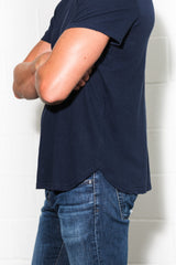 Our curved bottom style tee now combined with a cotton and linen fabrication for a soft and supple feel. Part linen to reduce wrinkle, increase breathability, and ensure durability. Part cotton to create a soft feeling that will never fade. This is a fashion cut tee taken to a new level.