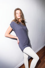 Modal Curved Bottom Tee Dress - Graphite