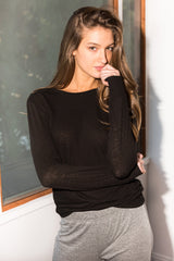 Women's Linen Blend Wide Cuff Long Sleeve Tee - Black