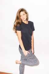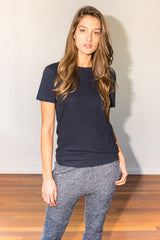 Women's Linen Blend Wide Neck Band Tee - Navy