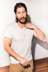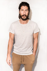 Relaxed fit, double raw edge detail at neckline, raw edge sleeve. Small breast pocket. Bourne fabrication jersey tee in Multi-Dot Pattern. There's nothing like a great tee, it's a versatile garment you can wear on its own, or dress up with your favorite layer. Perfect as a base layer or alone.