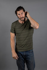 Premium Quality Sailor Pocket Crew Neck Tee in Stripe Pattern