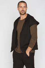 Our most advanced sleeveless hoodie ever featuring our latest performance Ponte fabrication. Ponte fabric travels well, doesn’t fade and is super comfortable. It rarely wrinkles and has extremely durable wear. Breathable for workouts yet warm when you need it for all your journeys.