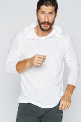 We've taken our customer favorite cotton linen fabrication and turned it into a long sleeve tee hoodie. Breathable and smooth it layers effortlessly or is great on its own. Part linen to reduce wrinkle, increase breathability, and ensure durability. Part cotton to create a soft feeling that will never fade.
