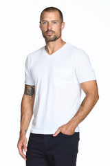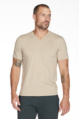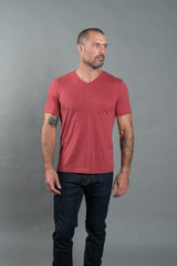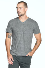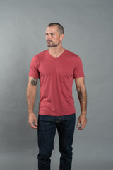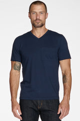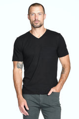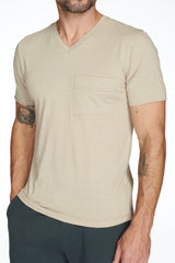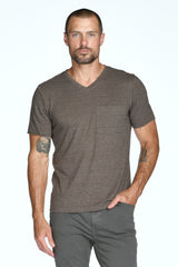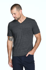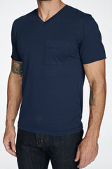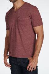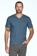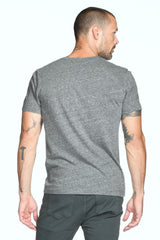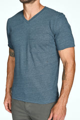 A stylish tee flawlessly cut, with a structured fit. Wide pocket and V-Neck for added character. Our tri-blend fabrication boasts the comfort of cotton, durability of polyester, and the luxurious drape of rayon.