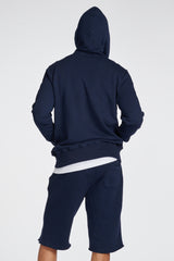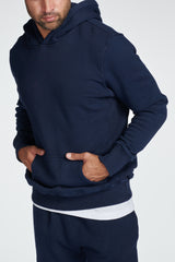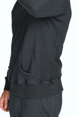 Heavy-weight velour back French Terry Hoodie. The classic hooded pullover silhouette is paired with a distressed garment dye wash. An accent contrast ribbing is affixed to side panels, cuffs, and waistband of hoodie. The premium French Terry fabric is cut to perfection creating an exceptionally soft and sturdy hoodie that adds style without sacrificing comfort. This vintage inspired hoodie is one that will provide warmth and durability, looking even better after each wear. Pair with Briggs French Terry short or jogger for a completed look.