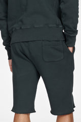 Vintage inspired, heavy-weight cotton French Terry Short. This velour back French Terry short has a distressed wash, providing a vintage look to the contemporary quality. 100% cotton for an exceptionally soft and sturdy fit. Pull-on waist band with a ribbed contrast. Slash pockets at sides. Raw edge detail at leg hem. Back pocket added for utility. Pairs perfectly with the Briggs hoodie or Briggs crew for a complete look.