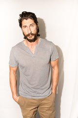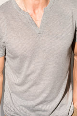 Men's Jersey Cross V-Neck Tee - Grey White Stripe
