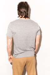 Relaxed fit body, cross v-neck, bourne fabrication jersey tee in Heather Grey.