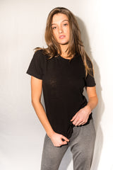 Relaxed fit body, wide neck tee in Black.
