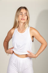 Our Terrace Tank is made of our most luxe, silky, modal. Our modal material is known for its breathability and durability. The tank has wide arm holes and a scoop neck to allow for free movement and comfort that moves with you. This luxe modal tank will hold its color, satiny feel, and shape, wear after wear. A classic cut tank with a modern, luxe feel that is unparalleled.