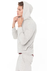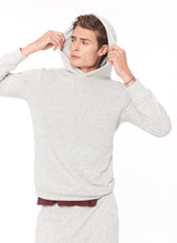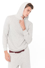 OUTSTANDING SOFT QUALITY, RELAXED FIT, BRUSHED FRENCH TERRY PULLOVER HOODIE IN LIGHT HEATHER GREY. CLEAN FINISHED FRONT FULL POCKETS. DOUBLED HOOD WITH CENTER BACK SEAM. TURN BACK SELF CUFF AND BOTTOM HEM.