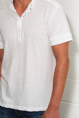 Men's Cotton Linen Snap-Up Mock Neck Tee