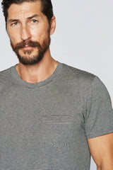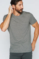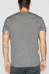 Premium Quality Crew V-Pocket Tee in Stripe Pattern (Black & Grey)