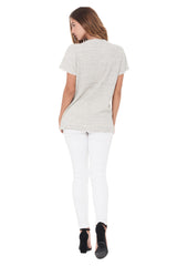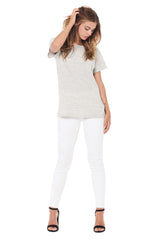 WOMEN'S NOVELTY TEXTURE CREW NECK TEE - CREAM THERMAL